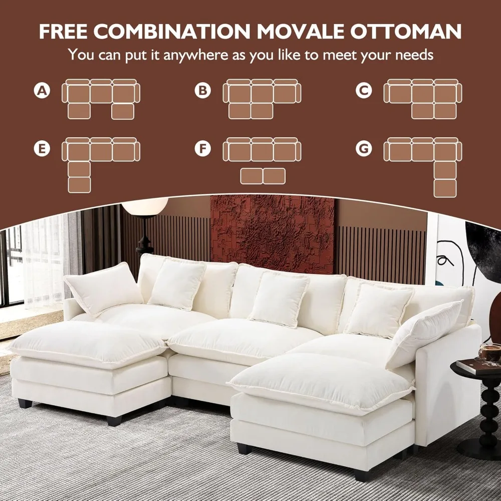 111.4" U Shaped Cloud Couch Modern Modular Sectional Sofa with 2 Ottoman, 5-Seat Chenille Deep Seat Sofa with 5 Pillows