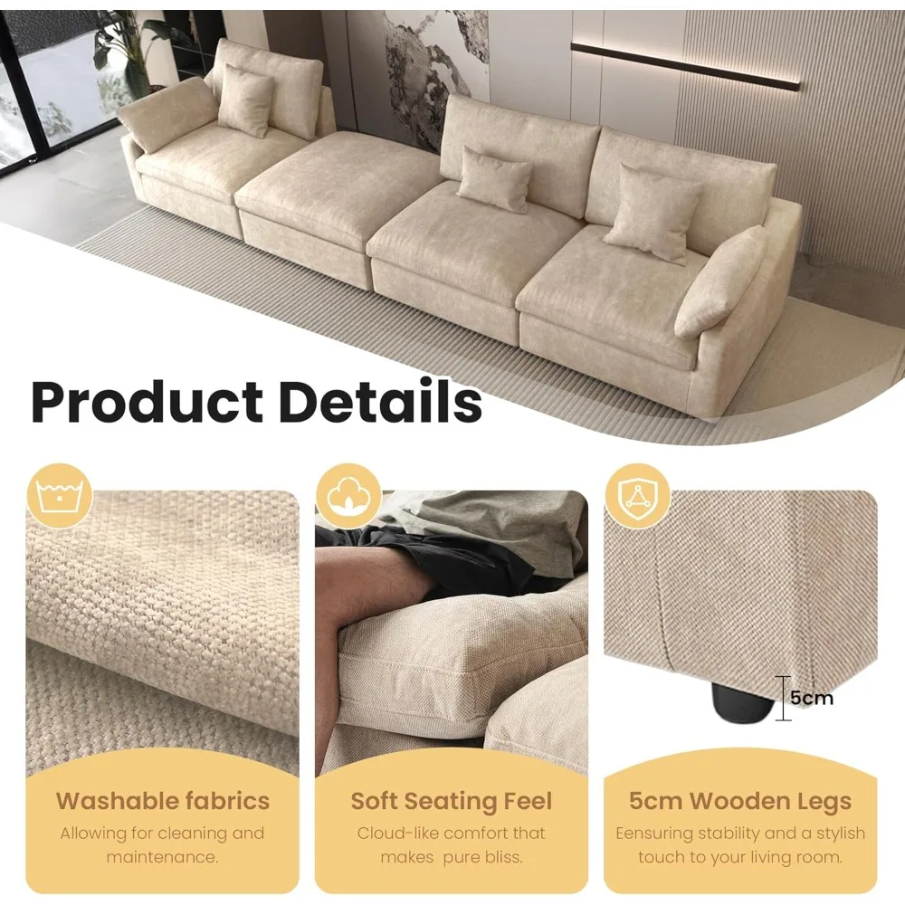 - 👪【Epitome Of Comfortable & Elegant】The Cloud Modular Sofa is filled with sponge and down feathers on the inside, providing a soft and comfortable feel, just like sitting on a cloud. Whether you want to relax or enjoy a good read, this sofa will offer you an incredibly comfortable experience.