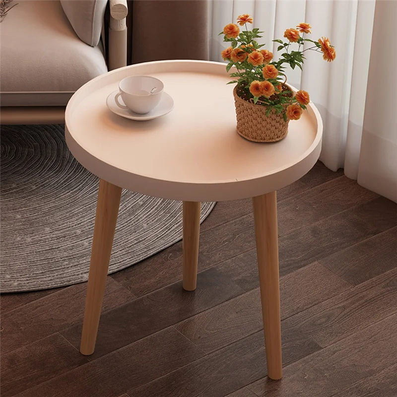 [Tough and sturdy side table]-The legs of this round side table are made of thick solid wood. The legs of the small table adopt a triangular structure, which is very stable.