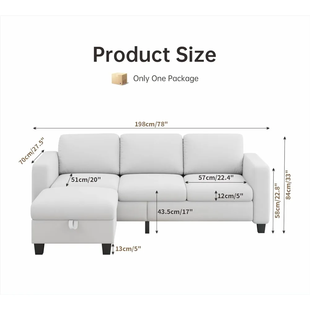 Luxury-Style Sectional Couches for Living Room 78" Convertible L Shaped Couch 3 Seater Sofas with Storage Ottoman, Mordern