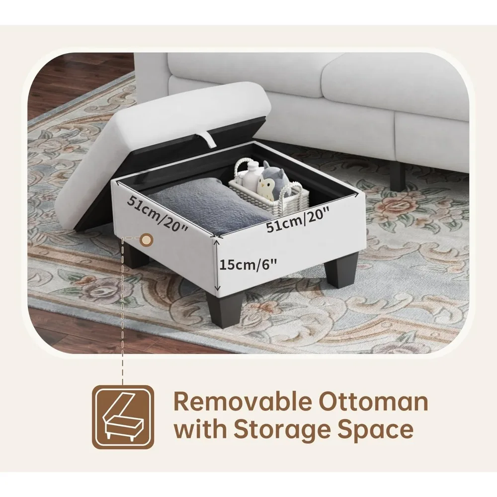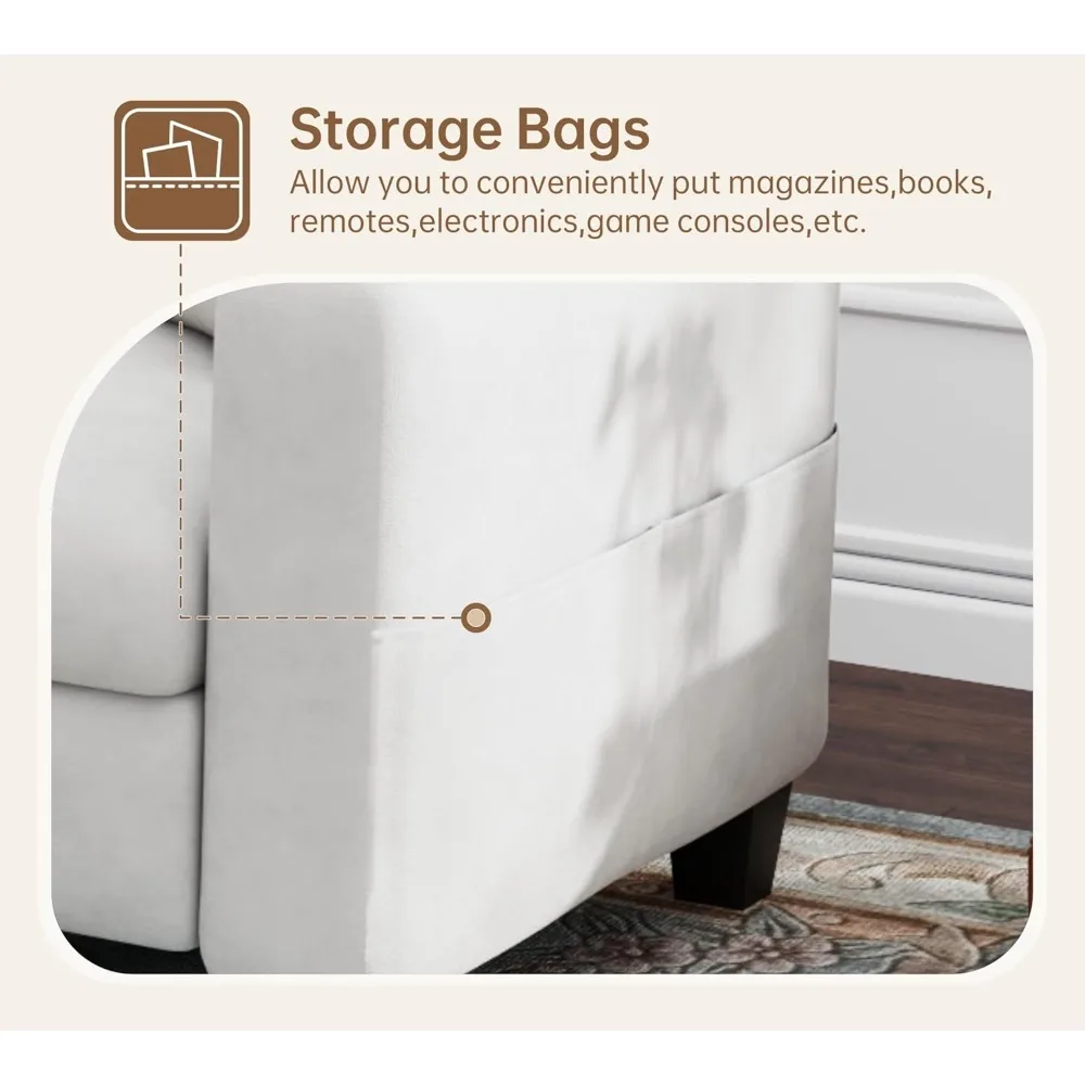 - Ample Storage Space:Sofas for living room featuring built-in storage space in the ottoman and side pockets helps keep your living area neat and organized by offering a hidden compartment for blankets, magazines, toys of your kids or pets, or other essentials.