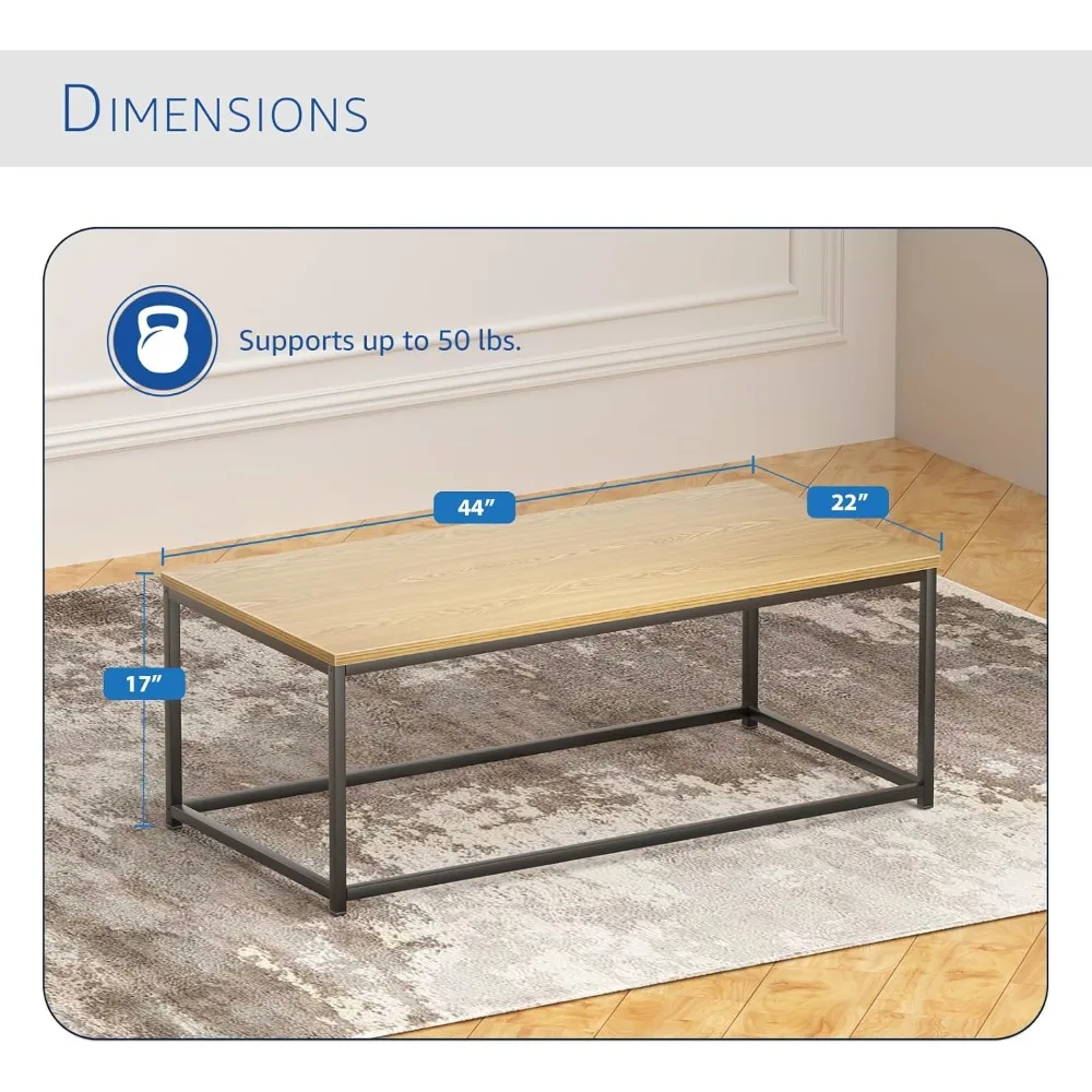 • ✅【 Larger Tabletop & Durable Steel Frame 】The table top measures approximately 44" Long x 22" Wide, likely the largest countertop you can get at this price point. The base is made of durable steel construction and together this coffee table is able to support up to 50 lbs of weight.