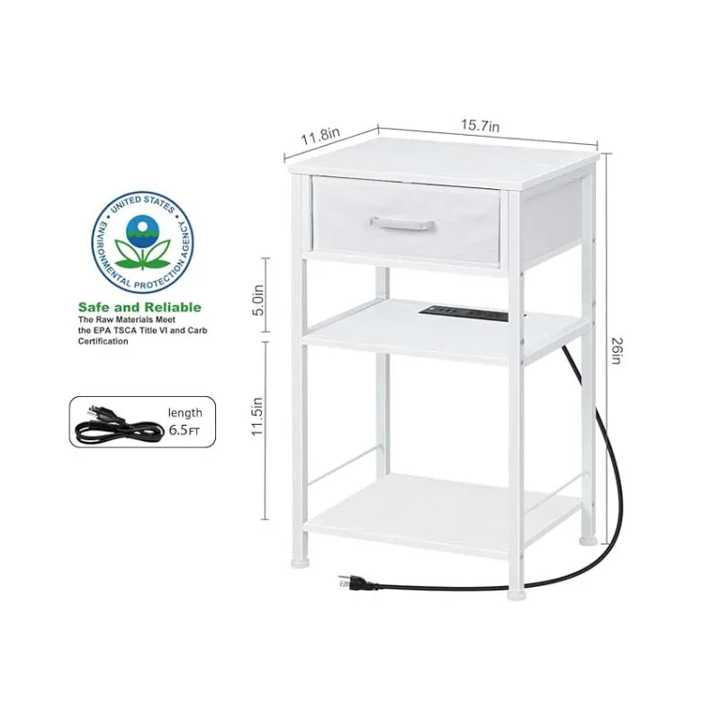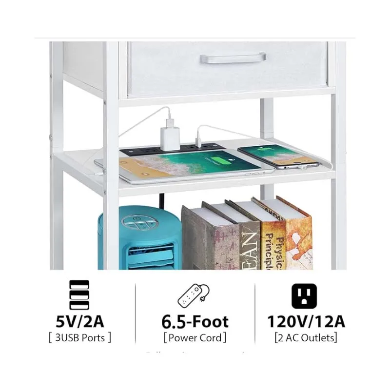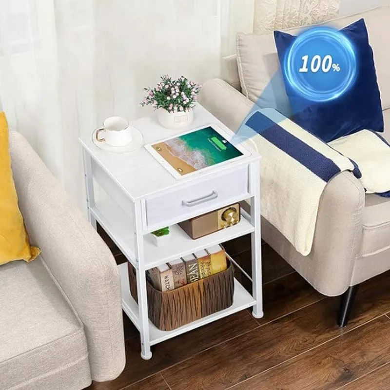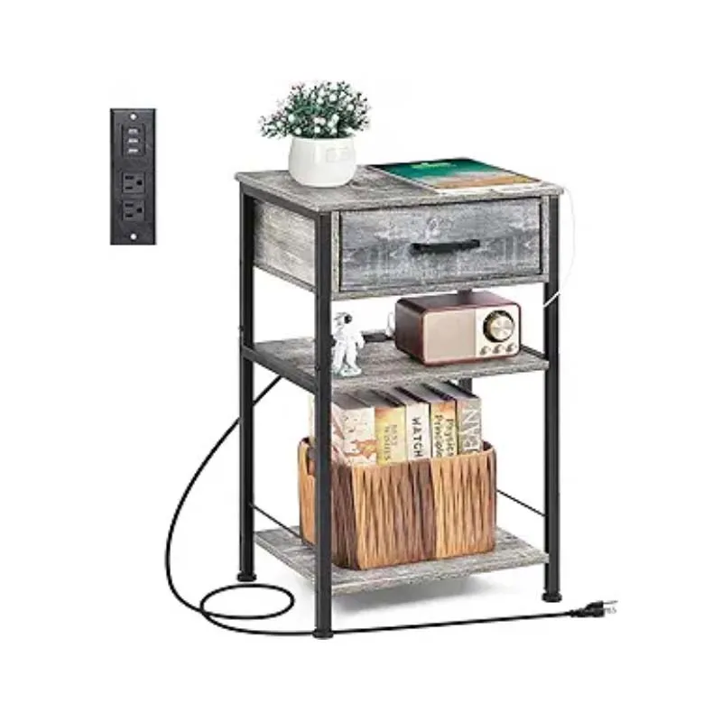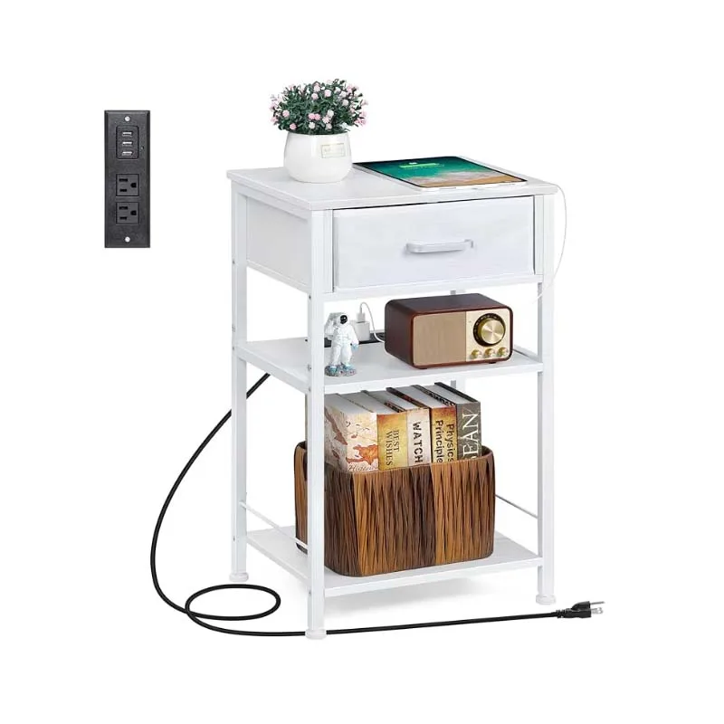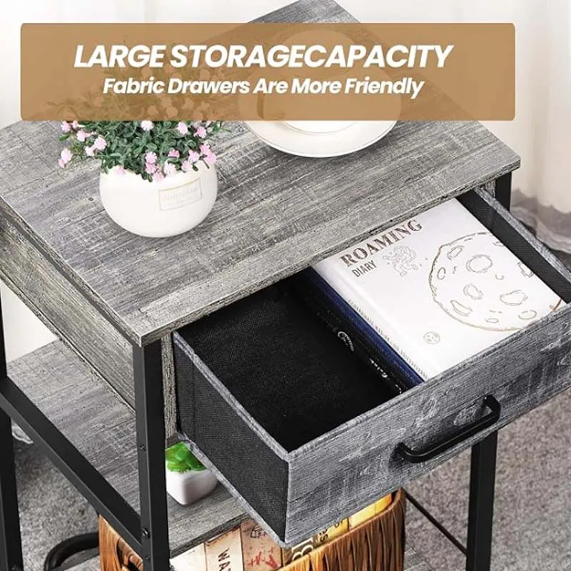 Nightstands with Charging Station,End Tables Living Room with USB Ports and Outlets Nightstand for Small Spaces Fabric Drawer