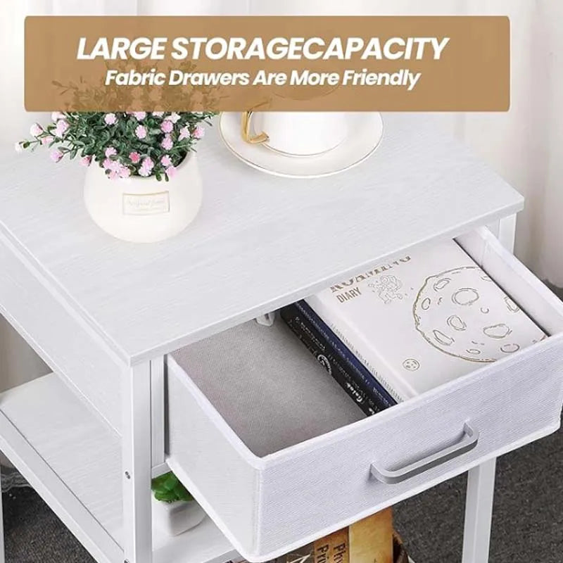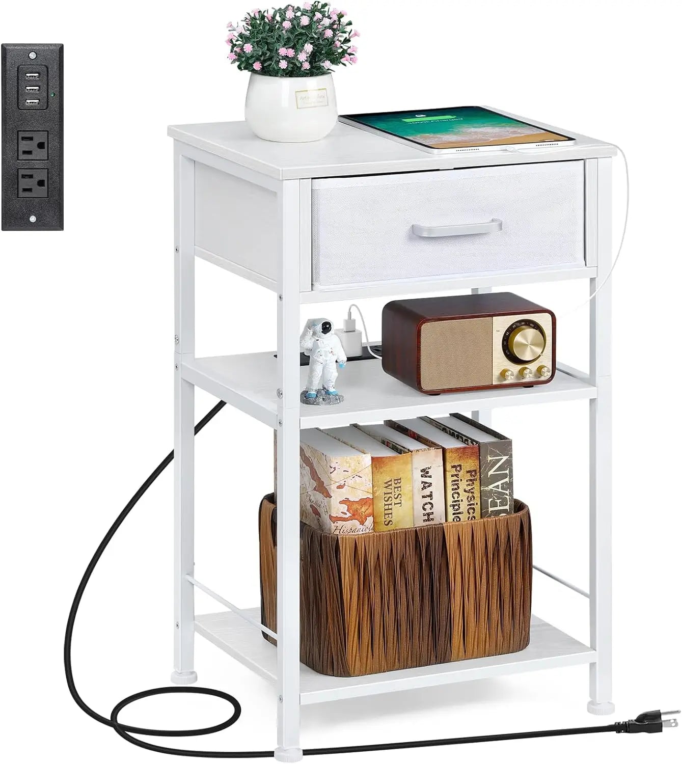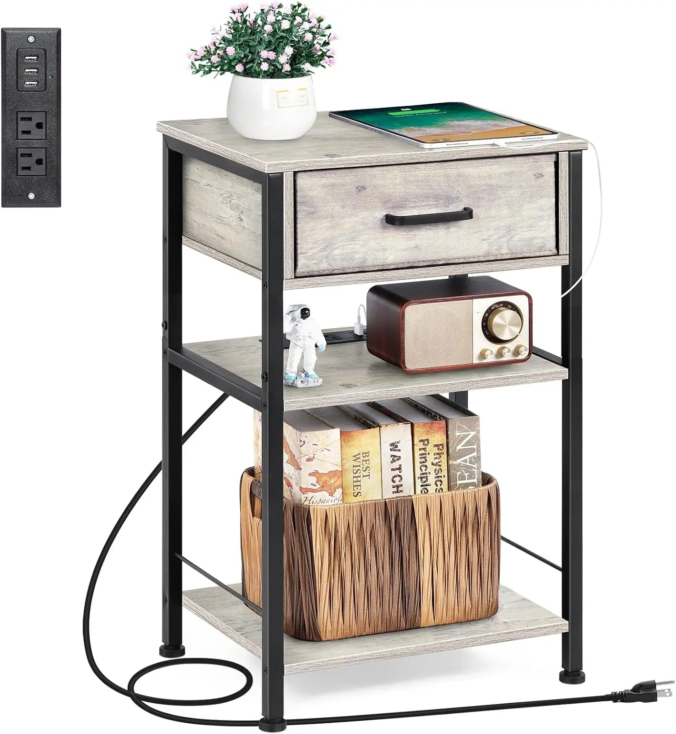 Nightstands with Charging Station,End Tables Living Room with USB Ports and Outlets Nightstand for Small Spaces Fabric Drawer