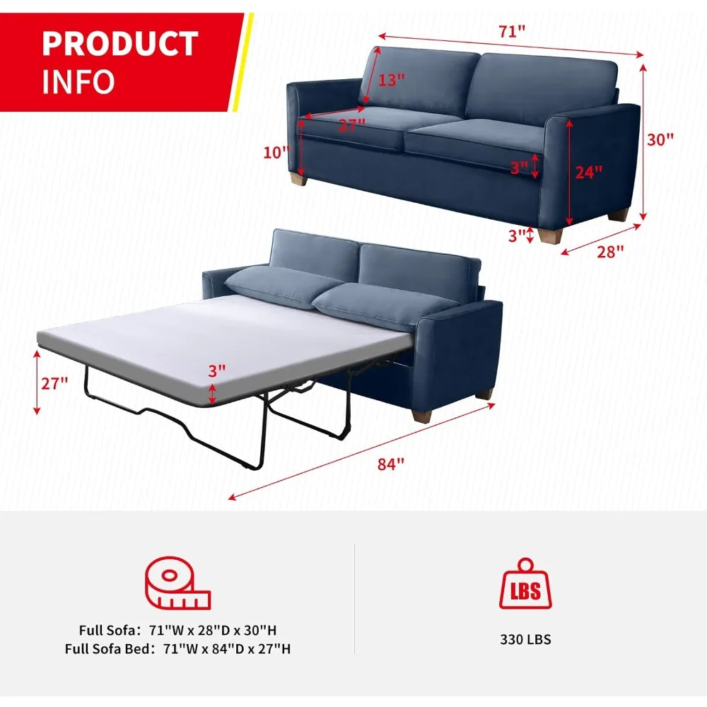 - 【Versatile Options】Available in three attractive colors (gray, blue,beige and dark gray) and two sizes (F, Q), allowing you to find the perfect match for your space and preferences. Full Size Sofa : 71'' W x 28'' D x 30 "H. Full Size Sofa Bed: 71 ''W x 84' D x 27 "H.