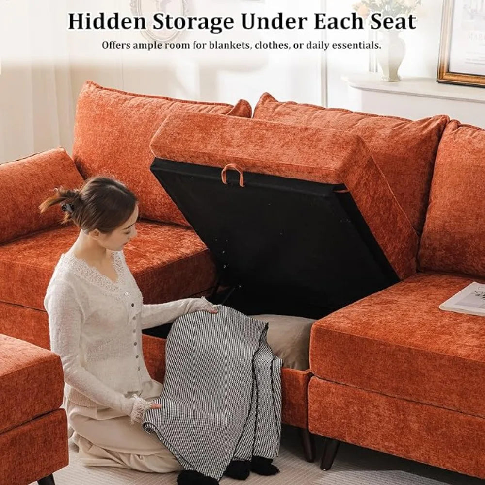 - Spacious Storage: Hidden storage under every seat, providing a practical solution for organizing blankets, pillows, toys,or other essentials, keeping your living room tidy.Storage dimensions: 31‘‘(L)*31‘‘(W)“*7“(H).