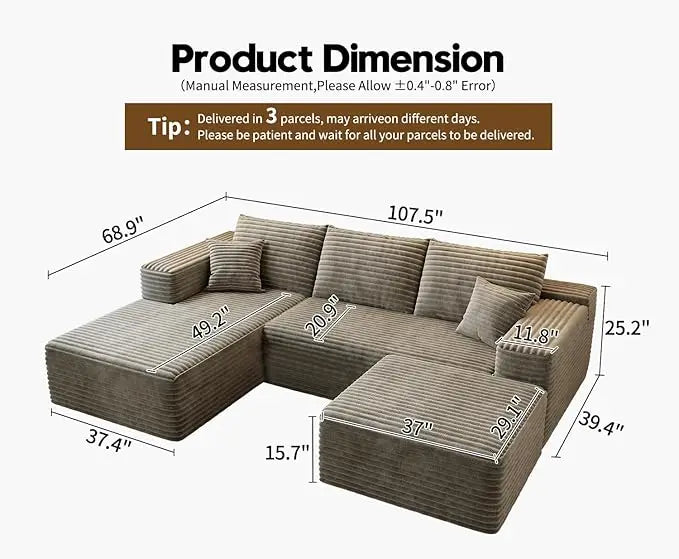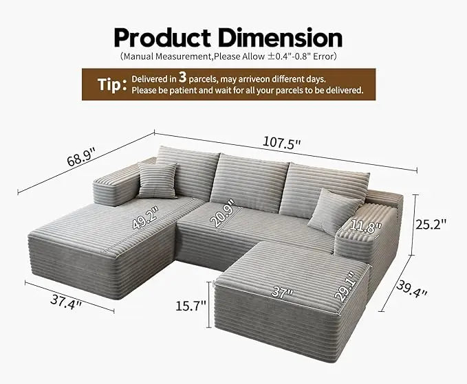 - Modular Sectional Sofa:This U-shaped sectional sofa featuring a sleek design, clean lines, and high-quality plush corduroy Fabric,This minimalist U-shaped sectional set maximizes space when placed against a wall,this corner sofa effortlessly adds a timeless and sophisticated touch to your home. Designed to be the focal point of attention, it's an ideal choice for elevating the ambiance of living rooms, apartments, and bedrooms.
