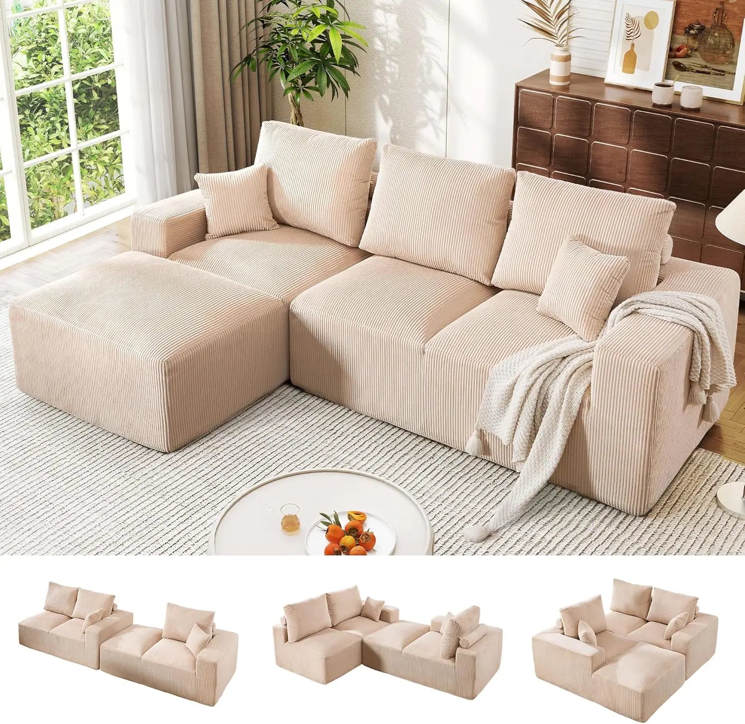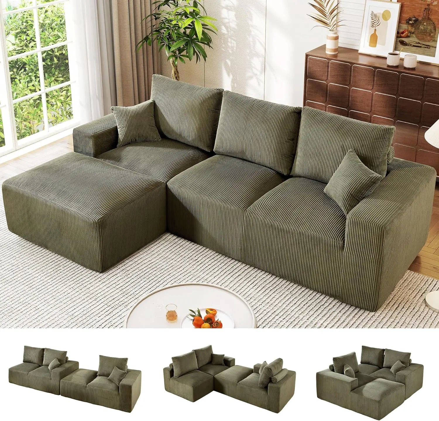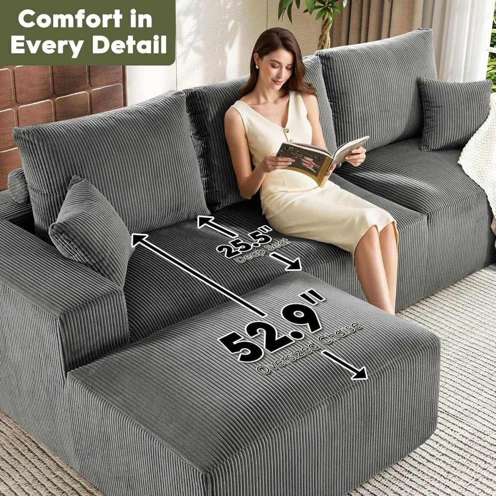 - 【Superior Quality & Comfort】Our L-shaped sofa features a three-layer cushion system—PP cotton, high-resilience foam, and reinforced springs—for long-lasting support up to 1200 lbs and comfort that won’t sag. Wrapped in high-grade corduroy, the fabric is soft to the touch yet durable enough for everyday use. You’ll feel the difference the moment you sit down.