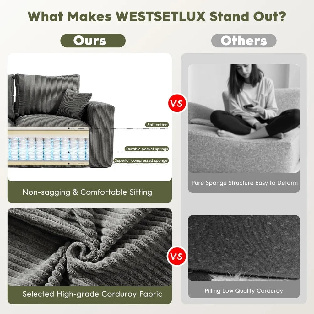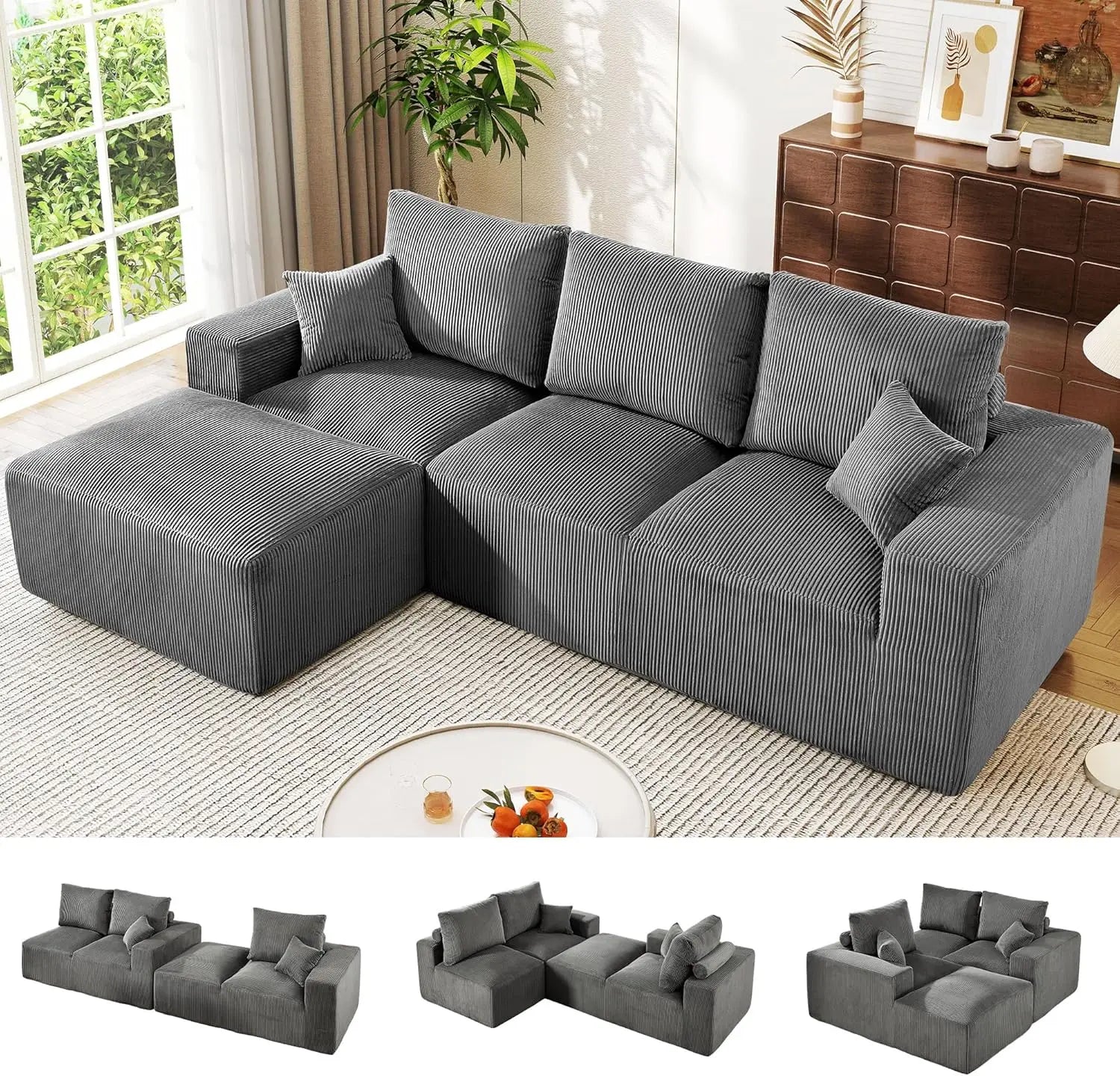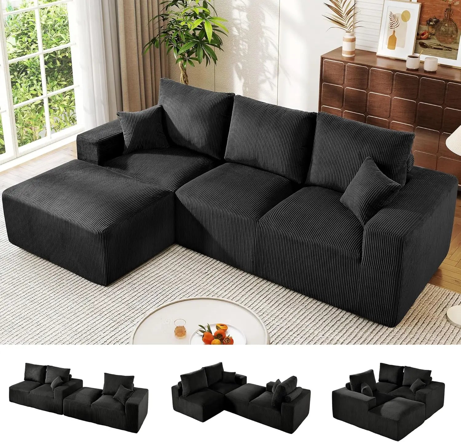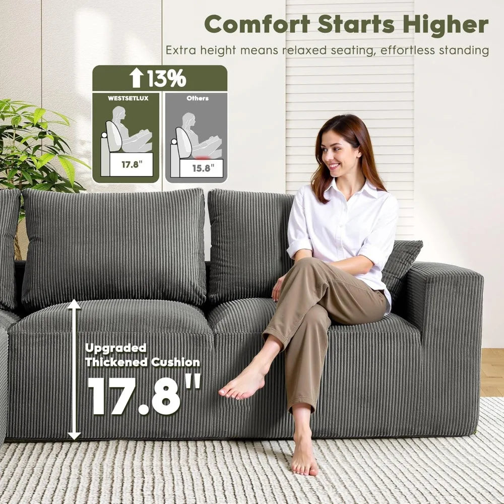 - 【Superior Quality & Comfort】Our L-shaped sofa features a three-layer cushion system—PP cotton, high-resilience foam, and reinforced springs—for long-lasting support up to 1200 lbs and comfort that won’t sag. Wrapped in high-grade corduroy, the fabric is soft to the touch yet durable enough for everyday use. You’ll feel the difference the moment you sit down.