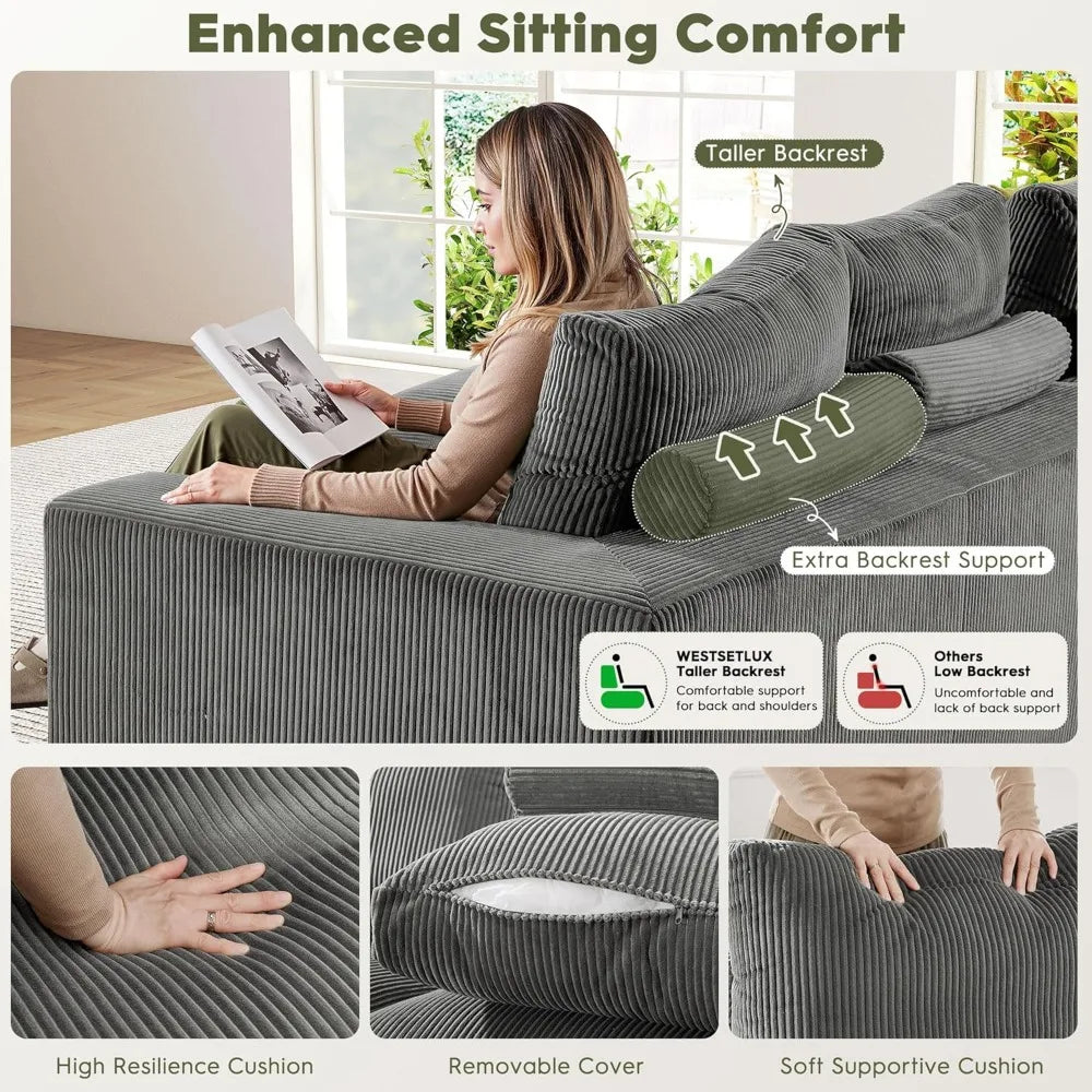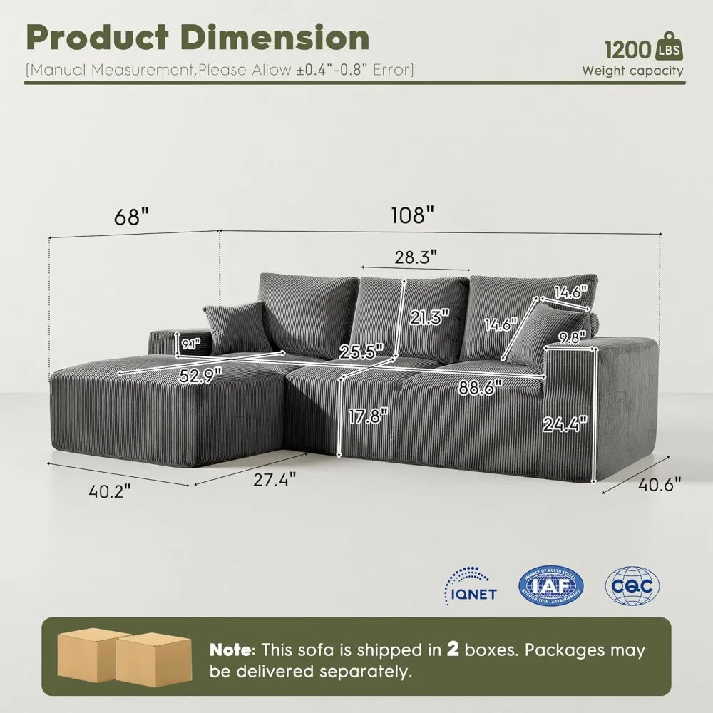 108” Cloud Sectional Sofa Couch with High-Seat, Corduroy Modular Sofa with Oversized Chaise, High-Back Modern L-Shaped Couches