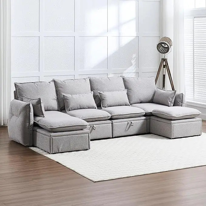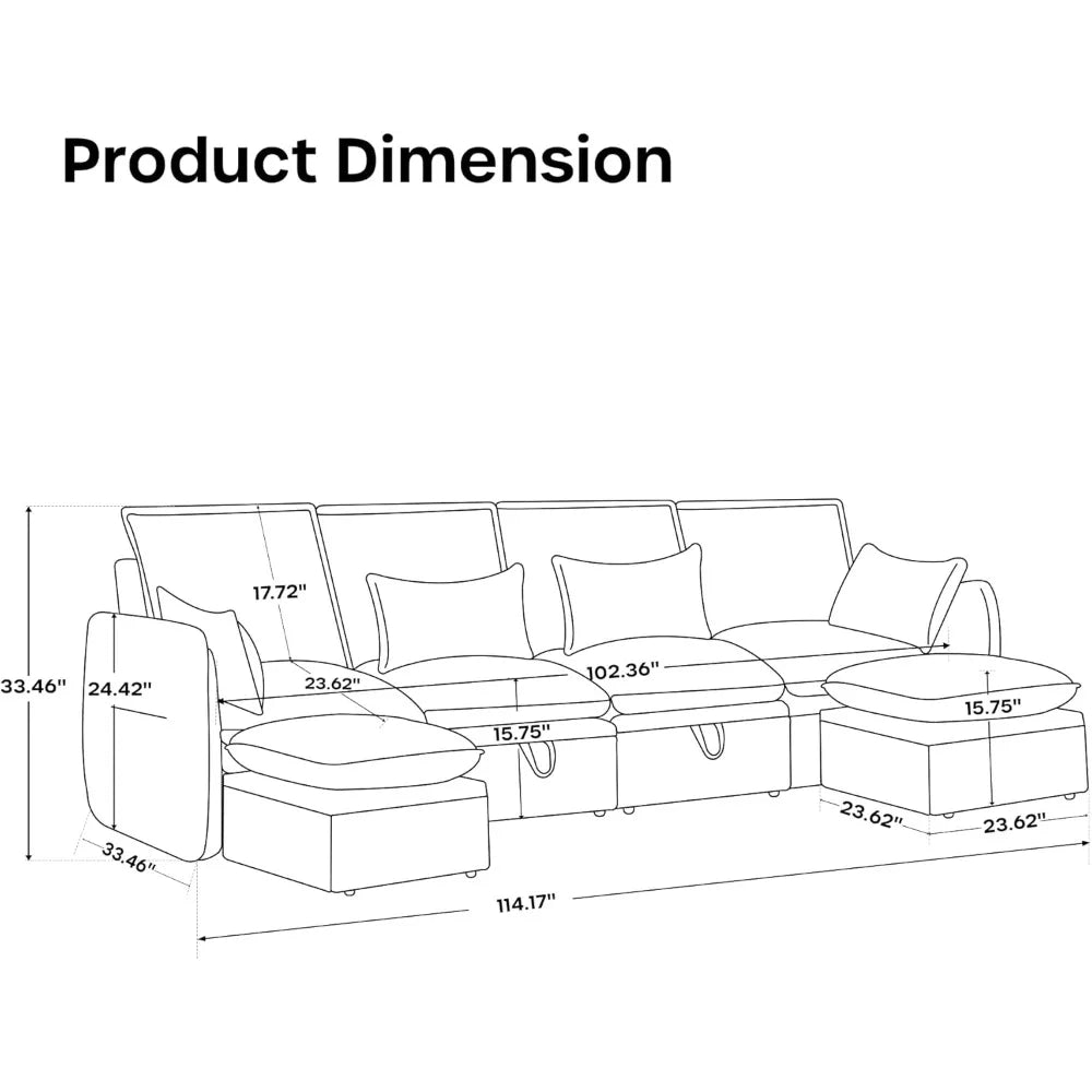 114'' Waterproof Modular Sectional Sofa with Large Storage, Convertible Cloud Couch with Storage Ottoman, Wide and Deep Seat