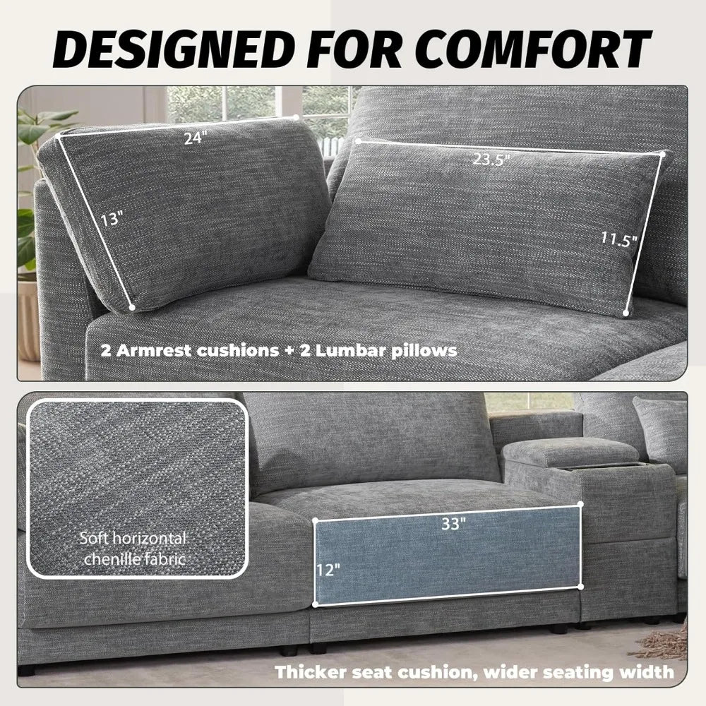 - Durable Chenille Fabric & Modern Comfort: Crafted with soft, stain-resistant chenille fabric, this 4-seat sectional sofa combines durability with contemporary style. Includes 4 free decorative pillows to elevate your home’s aesthetic.