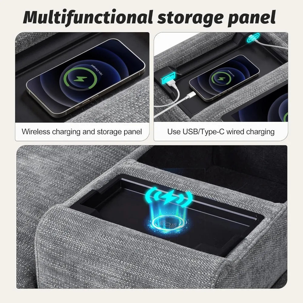 - Multi-Functional Storage Console & Charging Station: Stay organized with a flip-top console for quick-access items and a hidden drawer for clutter-free storage. The built-in wired/USB charger and wireless charging tray keep devices powered while you relax.