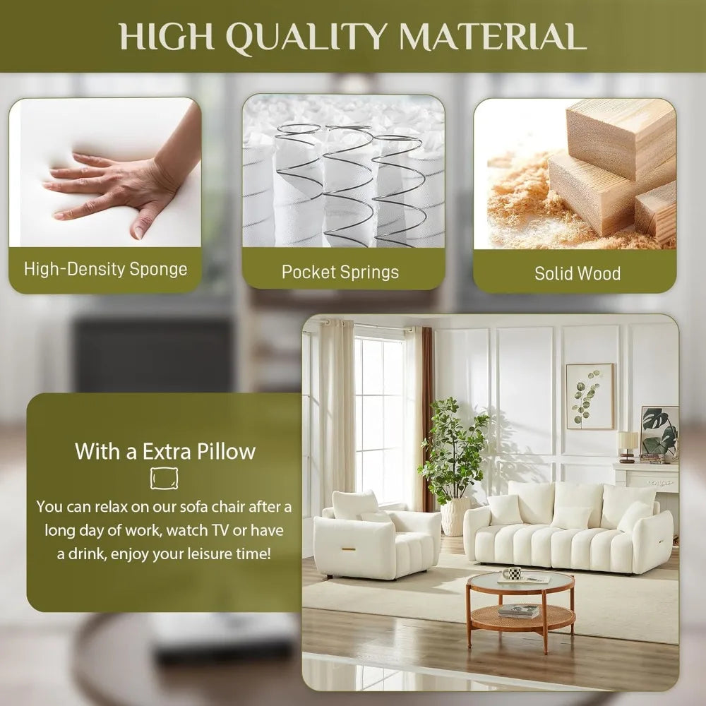 - 【Premium Material】The comfy sofas uses teddy fabric, which offers a soft touch while providing a fuzzy and breathable texture, wear-resistant and wrinkle-resistant. The thickened cushion and backrest are filled with high-density sponge and springs, soft and not easy to collapse!