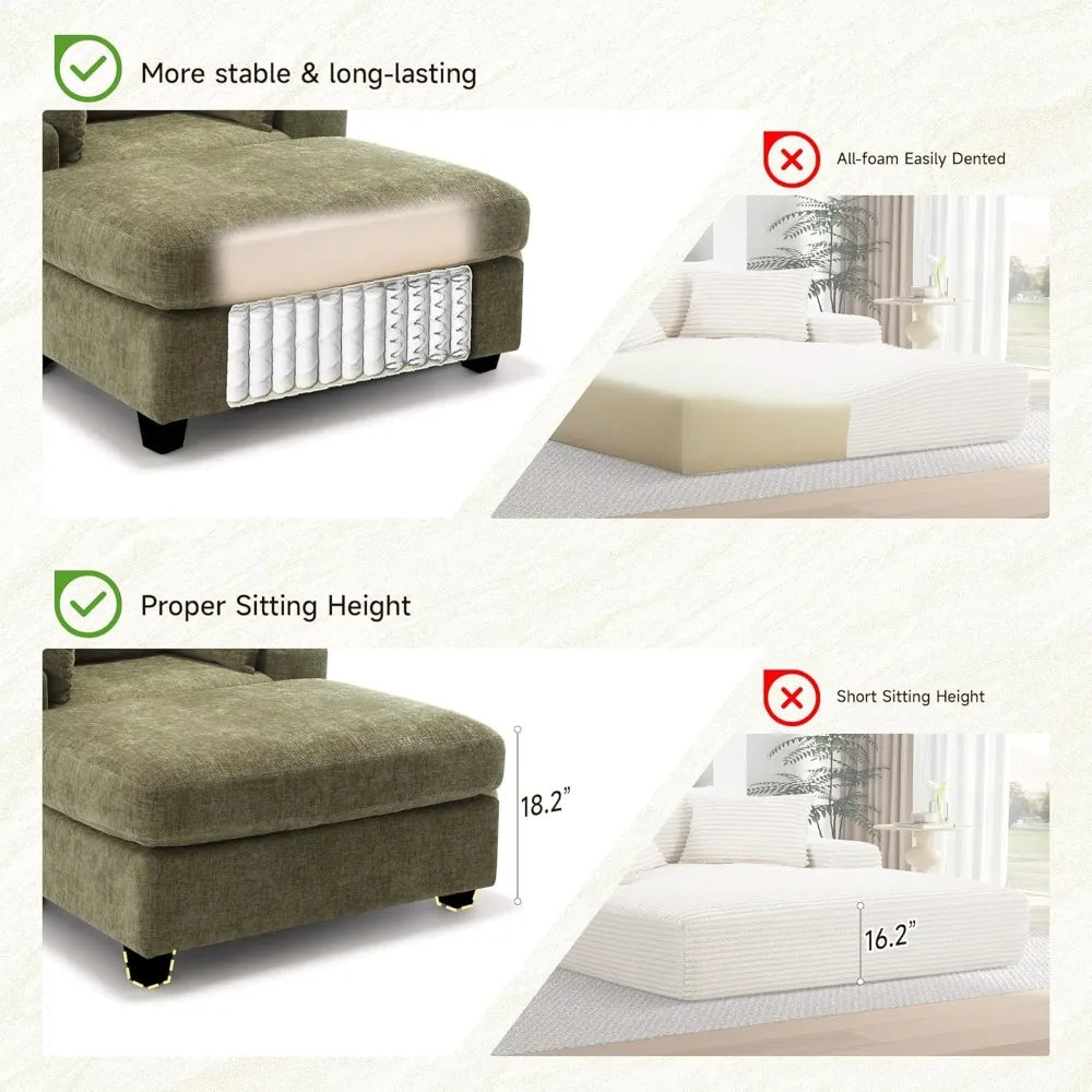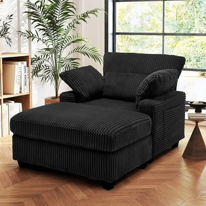 - Ideal Size for Small Spaces -With the ottoman direction adjustable, the internal depth of the upholstered chaise lounge can be 39.5" or 51.6", providing a spacious seat that's perfect for stretching out. The generous seat is 26" W*18.2"H. With an overall size of 37.9"W * 57.6"D * 33.9"H. It's the perfect fit for corners or smaller living areas, making it a great choice for apartments.
