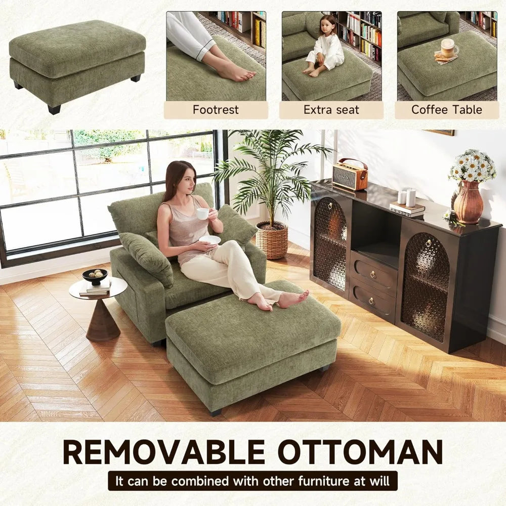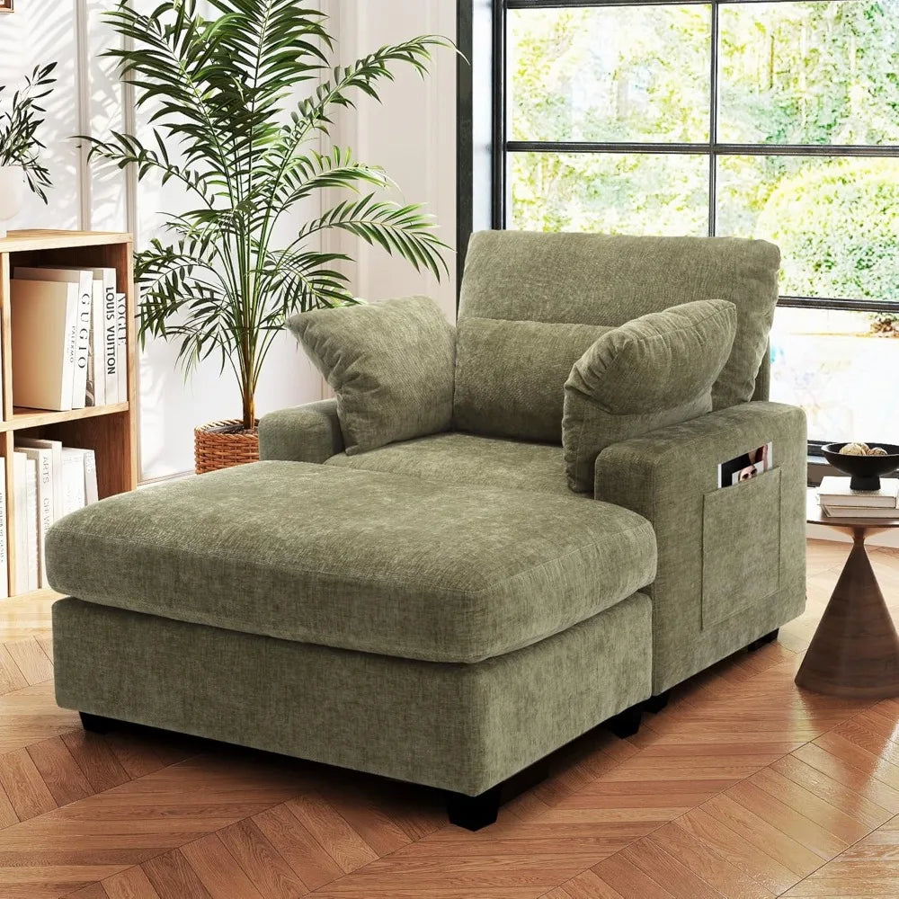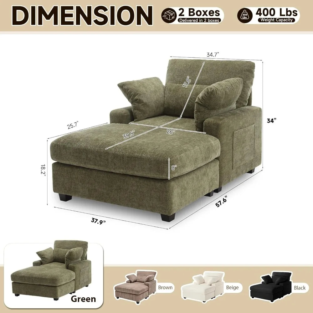 Luxury 57.6" D Chaise Lounge Chair Indoor with Ottoman, Comfy Chenille Reading Chair with Double-Sided Armrest and Lumbar