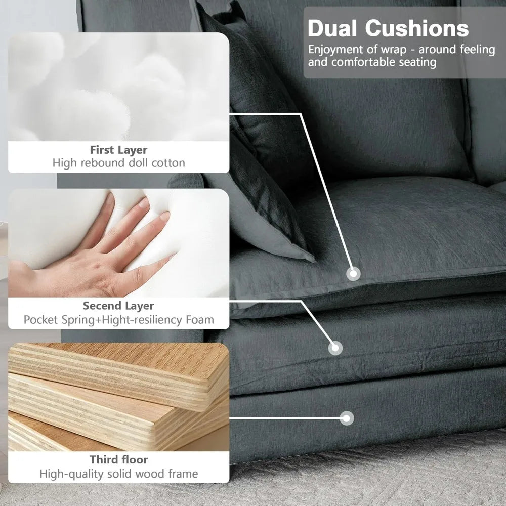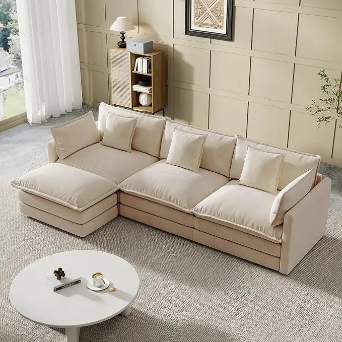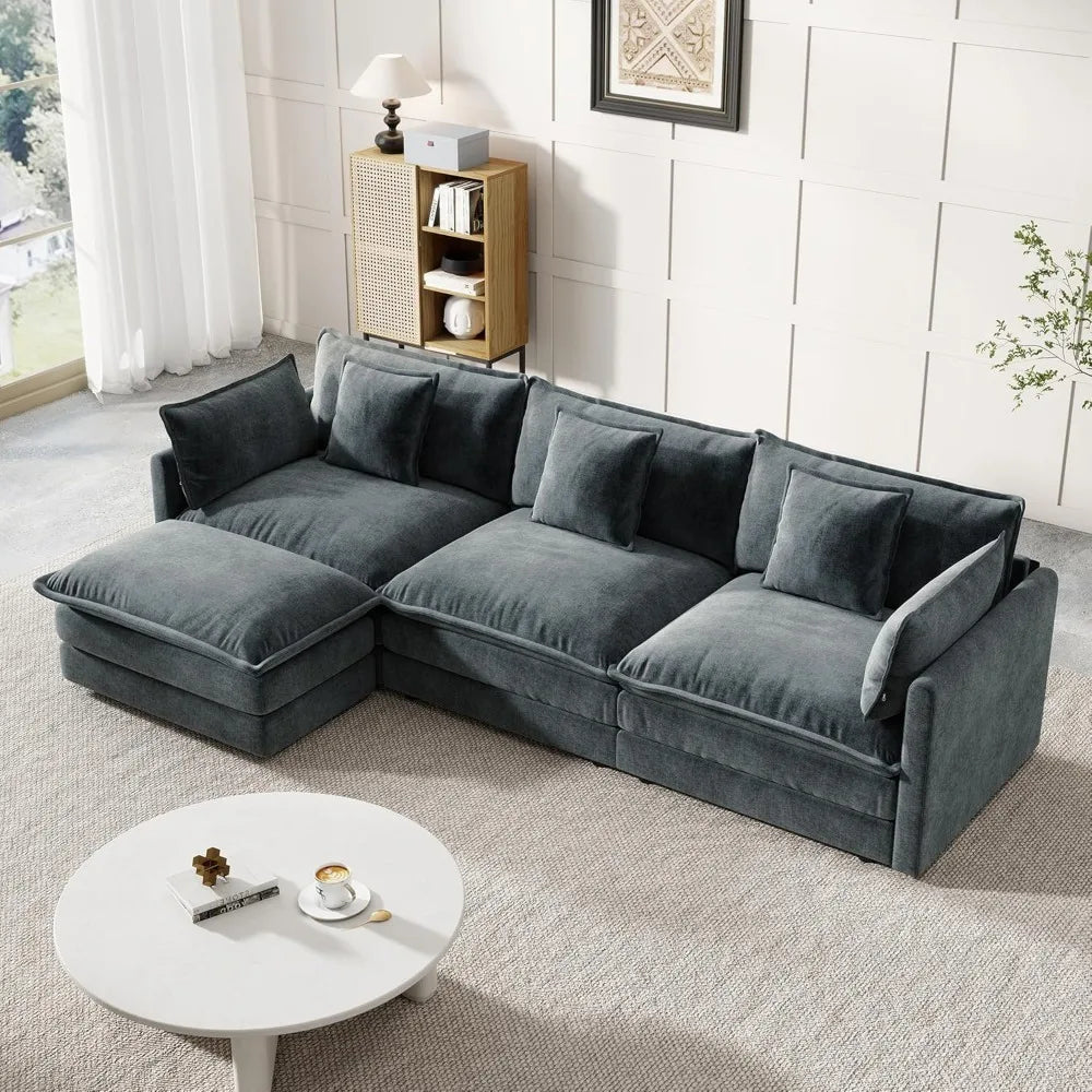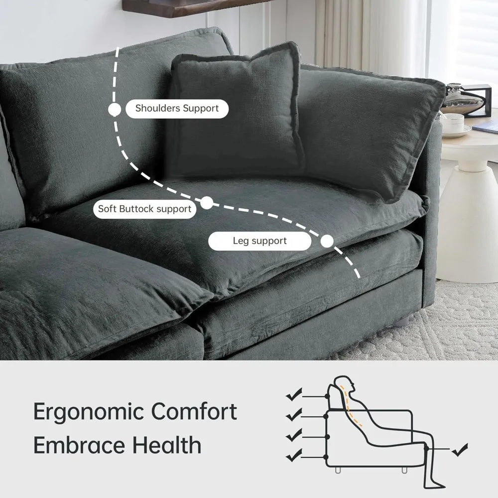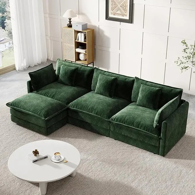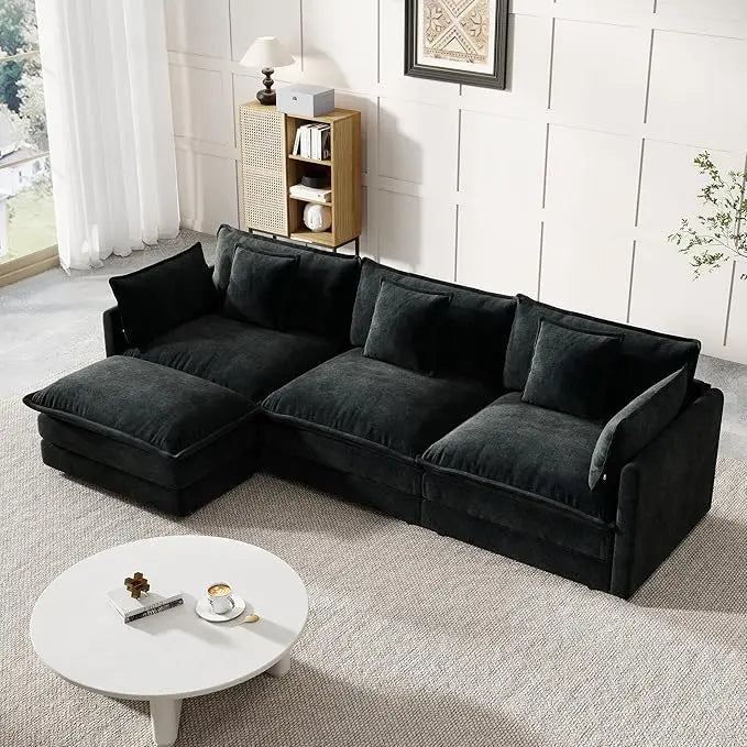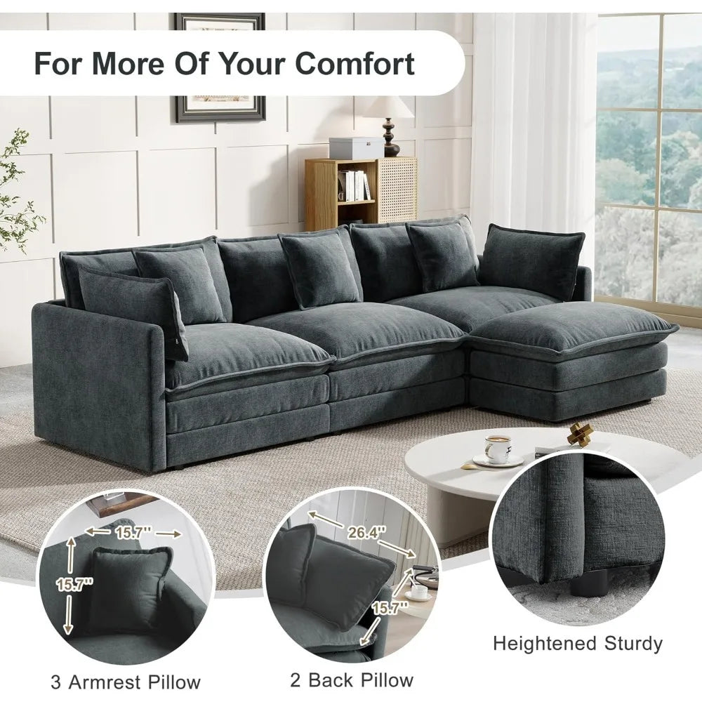 Modular Sectional Living Room Sofa – 111.5 Inch L-Shaped Cloud Sofa, Deep Seat Chenille Sofa with Cushions, Three-Self Sectional