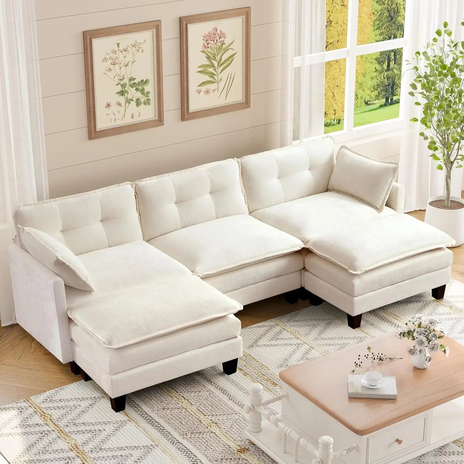 Modular Sectional Sofa, 111.5" U-Shaped Chenille Comfy Sectional Couches for Living Room, 3-Seater Cloud Couches with 2 Movable