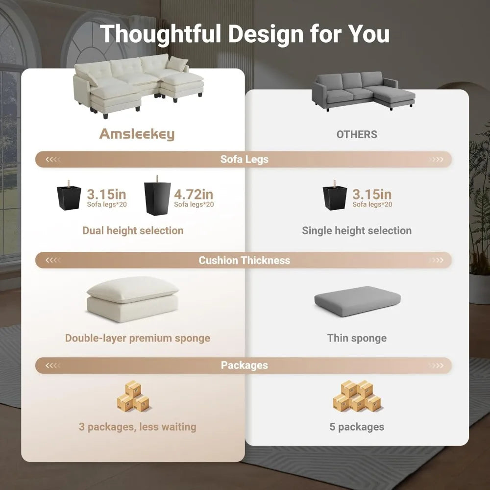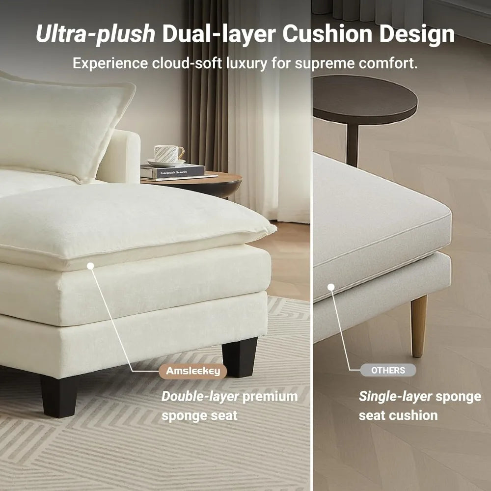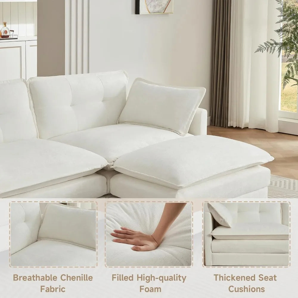 - Super Comfy Cloud Couch: Designed for both style and comfort, this modular sectional sofa is wrapped in luxuriously soft, breathable Chenille fabric and filled with high-density, resilient foam for a truly cloud-like feel. Whether you are watching your favorite show, or simply unwinding after a long day, this sofa offers the perfect balance of support and plush comfort. A perfect fit for living rooms, bedrooms, and home offices, its versatile, modern design blends seamlessly with any decor.