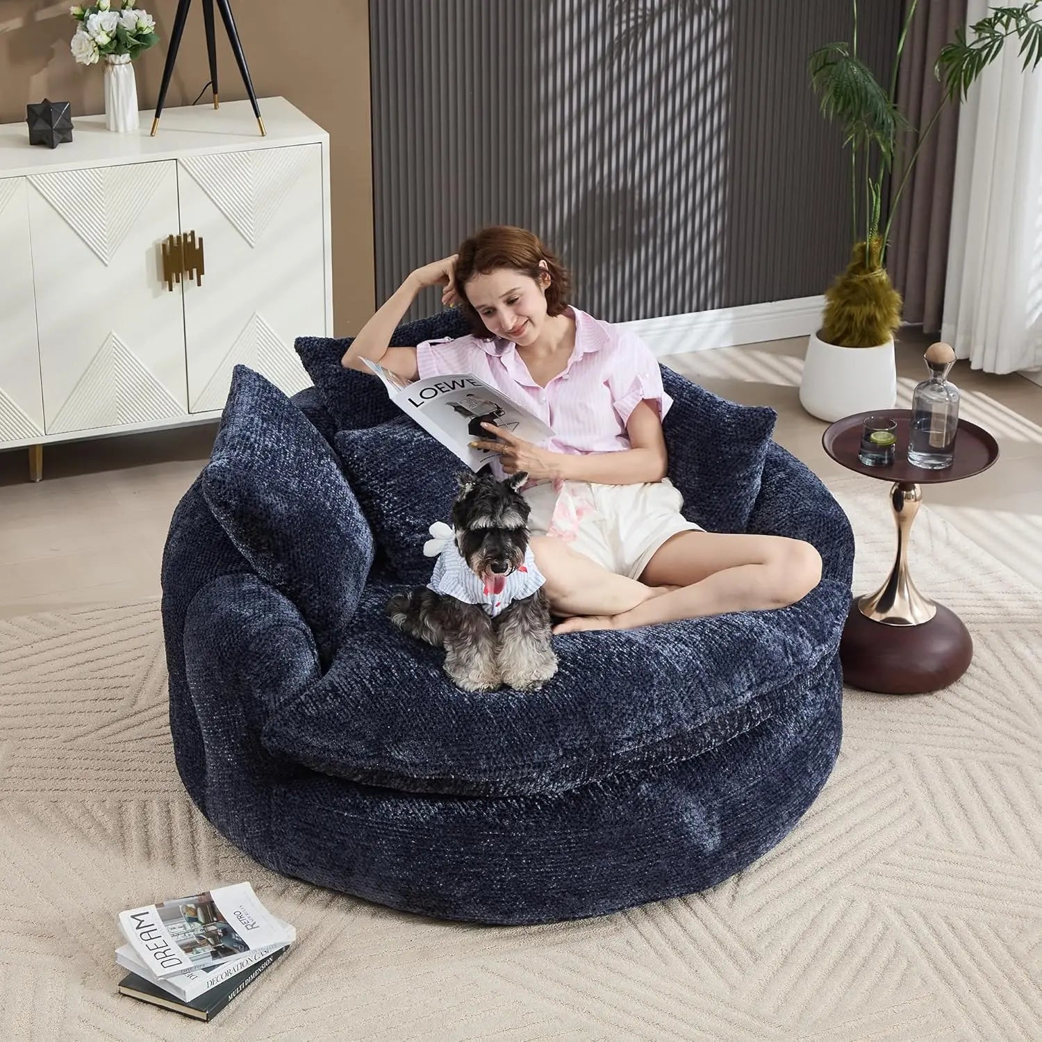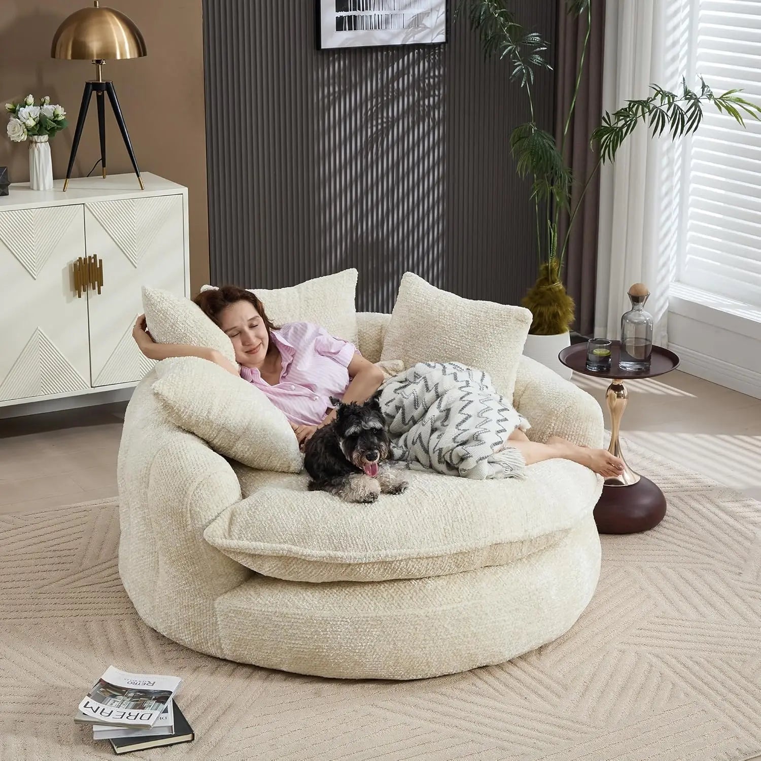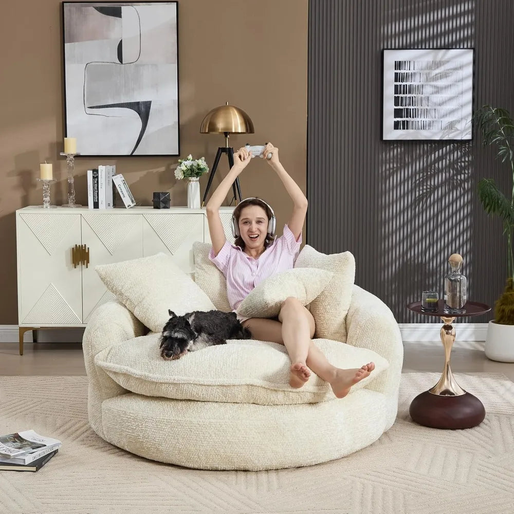 Oversized Round Chaise Lounge Indoor, Comfy Round Boneless Sofa Chair with Extra Deep Seat, Cozy Memory Foam Cuddle Circle Couch