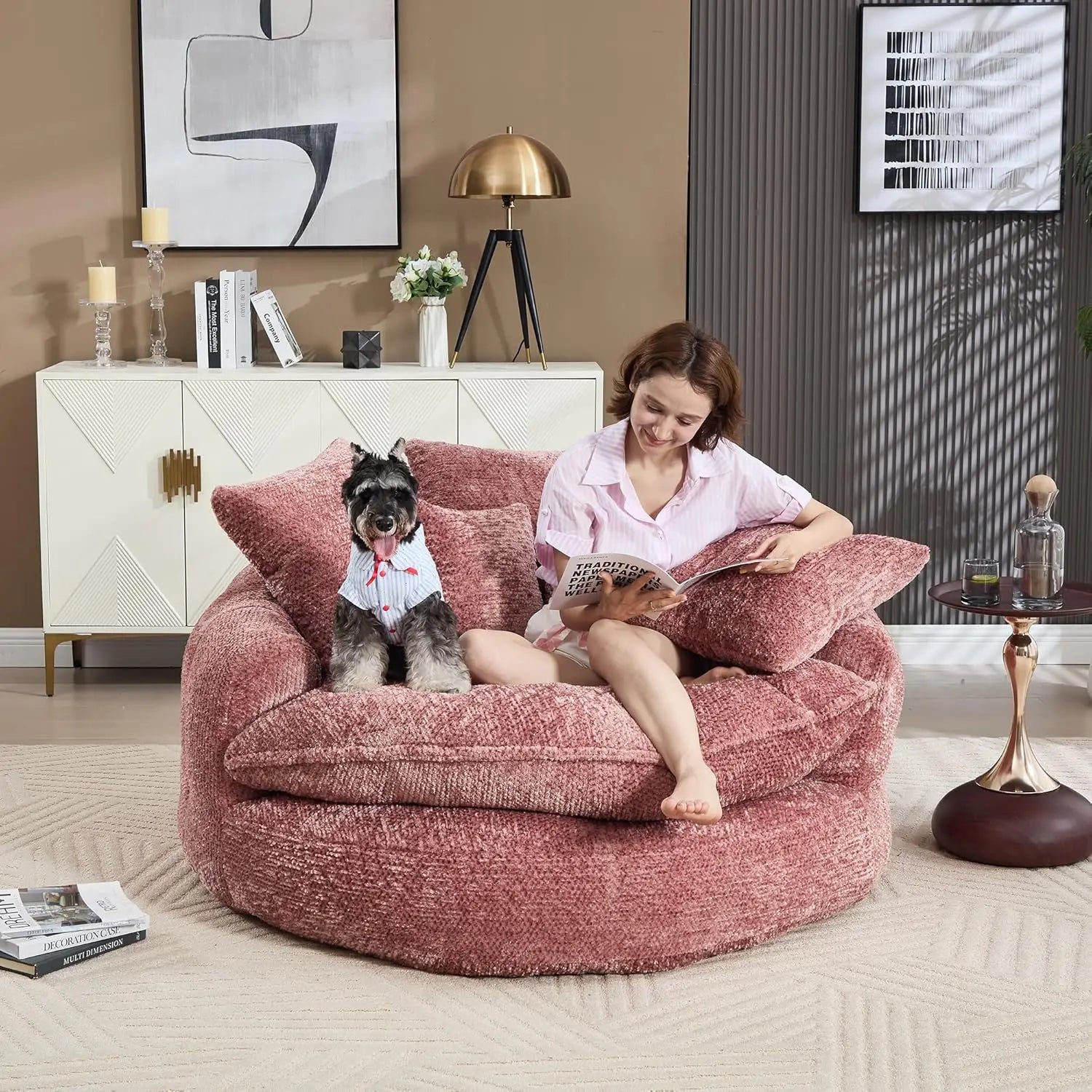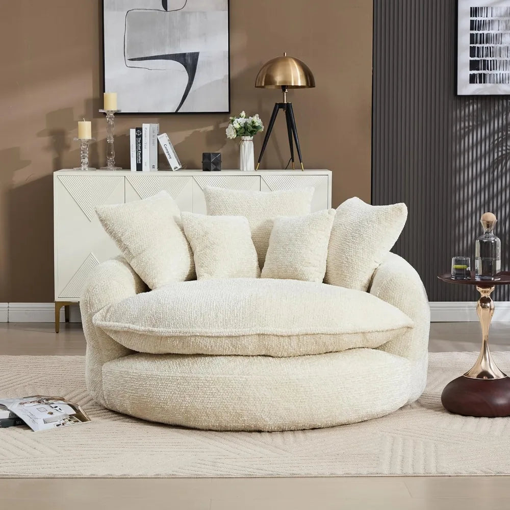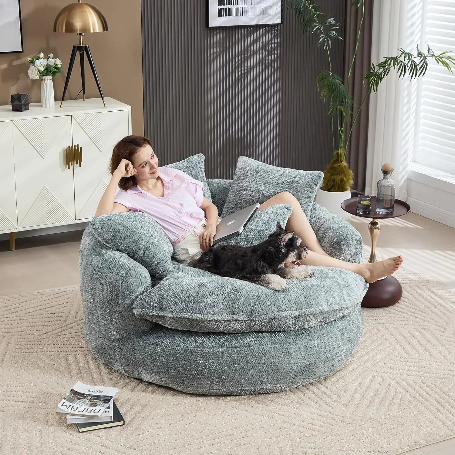 Oversized Round Chaise Lounge Indoor, Comfy Round Boneless Sofa Chair with Extra Deep Seat, Cozy Memory Foam Cuddle Circle Couch