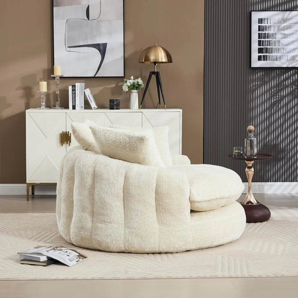 - 【Versatile Upholstered Boneless Chair】Whether in the home or office, this round chaise lounge adds a touch of elegance and versatility to any space, enhancing the beauty and functionality of your home with a perfect combination of practical design and soft texture. Designed to be the focal point of attention, it's an ideal choice for elevating the ambiance of living rooms, apartments, and bedrooms.