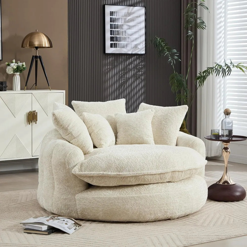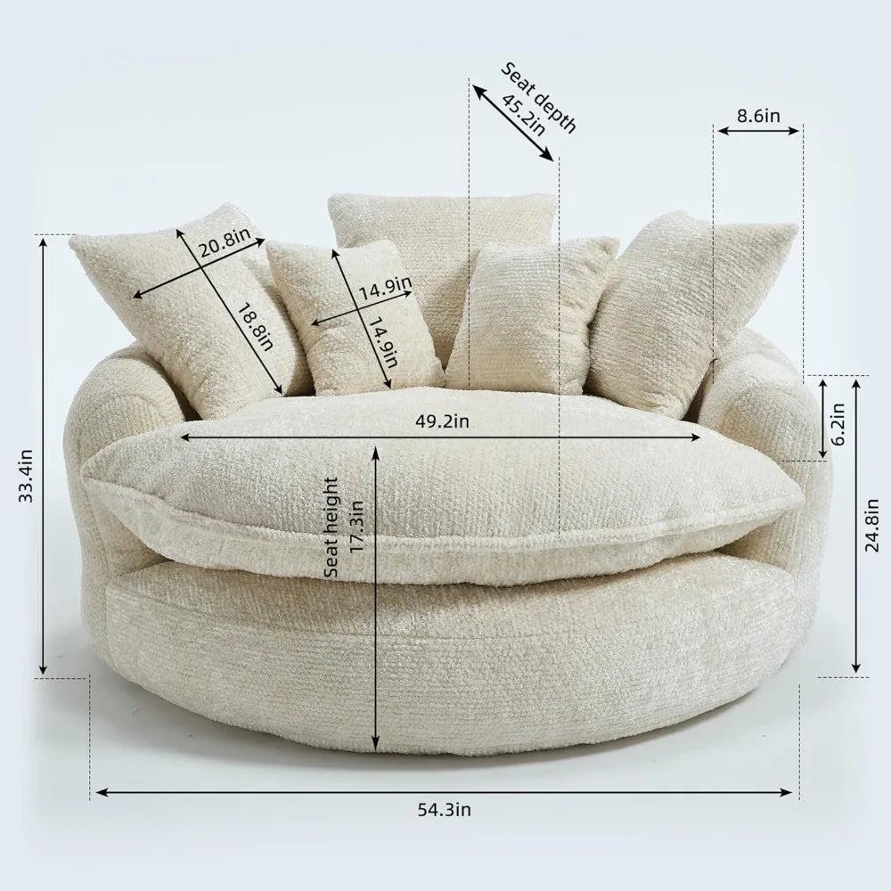 - 【54.3"L x 24.8"W Oversized Round Chair】This circle chair is approximately 54.3"W * 55.1"D * 26.7"H. Have a good time for watching TV, playing games & reading on this oversized chiar in living room furniture.